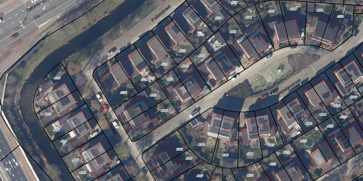 Gebruik de zoekbalk of klik op een perceel voor informatie over de adressen binnen dit perceel.