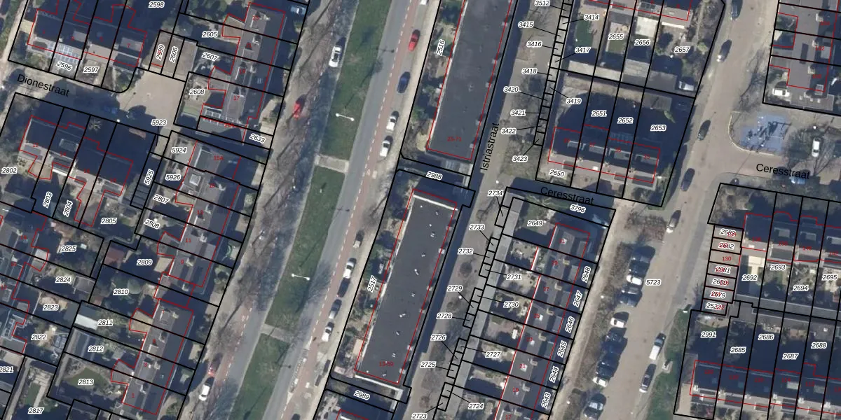 Het perceel waarop Istriastraat 59 staat heeft een oppervlakte van 922 m². Dit is een groot perceel. De perceeloppervlakte wordt geregistreerd door het Kadaster. Gedetailleerde informatie over de maten van dit perceel kunt u vinden in het rapport Kadastrale kaart met maatvoering van Istriastraat 59.