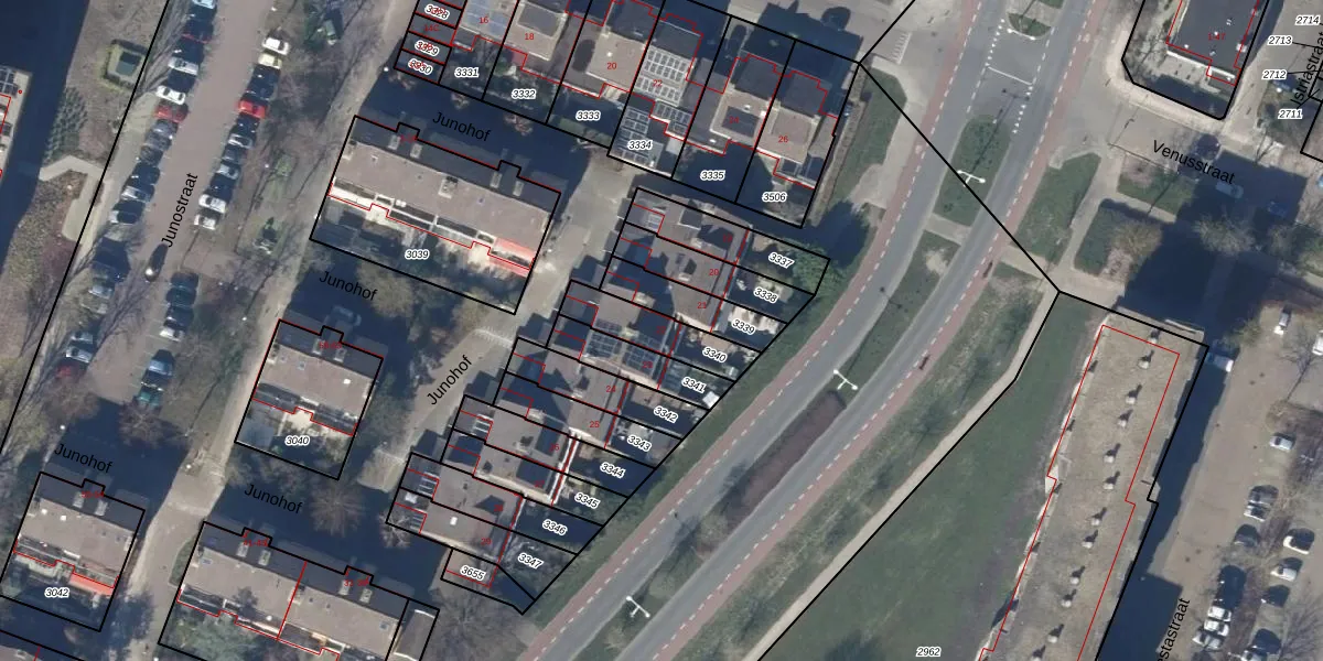Het perceel waarop Junohof 22 staat heeft een oppervlakte van 164 m². Dit is een middelgroot perceel. De perceeloppervlakte wordt geregistreerd door het Kadaster. Gedetailleerde informatie over de maten van dit perceel kunt u vinden in het rapport Kadastrale kaart met maatvoering van Junohof 22.