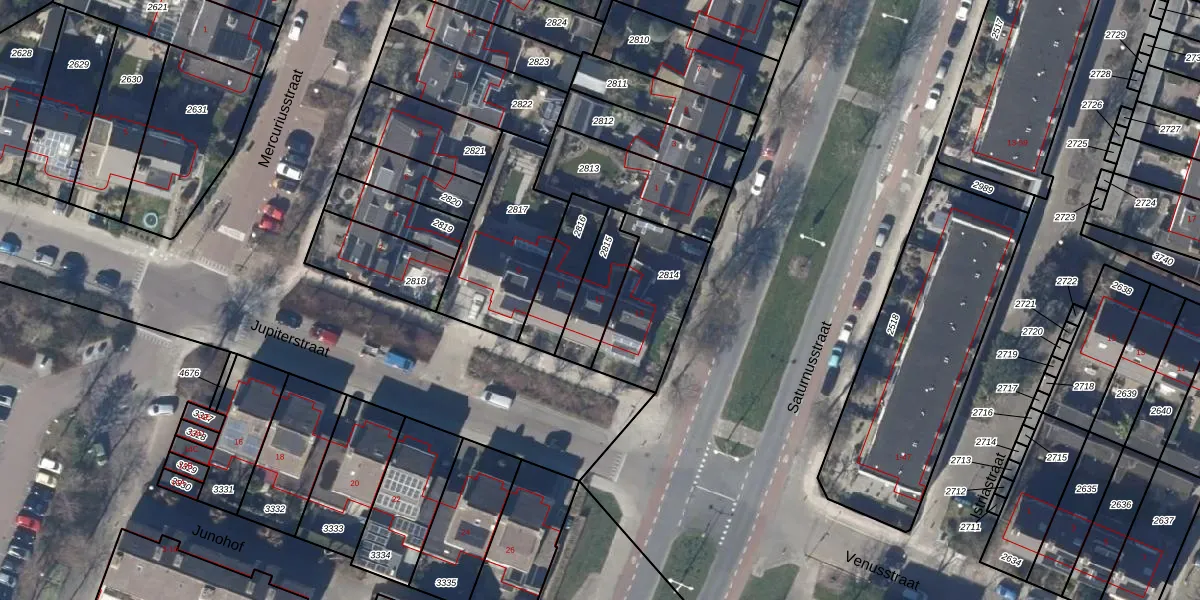Gebruik de zoekbalk of klik op een perceel voor informatie over de adressen binnen dit perceel.