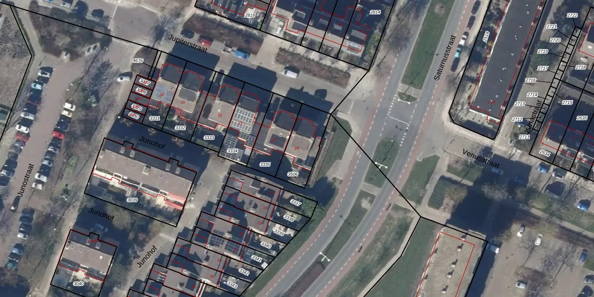 Het perceel waarop Jupiterstraat 26 staat heeft een oppervlakte van 279 m². Dit is een middelgroot perceel. De perceeloppervlakte wordt geregistreerd door het Kadaster. Gedetailleerde informatie over de maten van dit perceel kunt u vinden in het rapport Kadastrale kaart met maatvoering van Jupiterstraat 26.