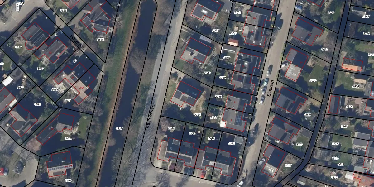 Het perceel waarop Kasteellaan 54 staat heeft een oppervlakte van 570 m². Dit is een groot perceel. De perceeloppervlakte wordt geregistreerd door het Kadaster. Gedetailleerde informatie over de maten van dit perceel kunt u vinden in het rapport Kadastrale kaart met maatvoering van Kasteellaan 54.