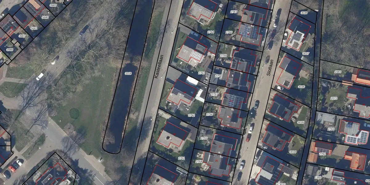 Het perceel waarop Kasteellaan 59 staat heeft een oppervlakte van 553 m². Dit is een groot perceel. De perceeloppervlakte wordt geregistreerd door het Kadaster. Gedetailleerde informatie over de maten van dit perceel kunt u vinden in het rapport Kadastrale kaart met maatvoering van Kasteellaan 59.