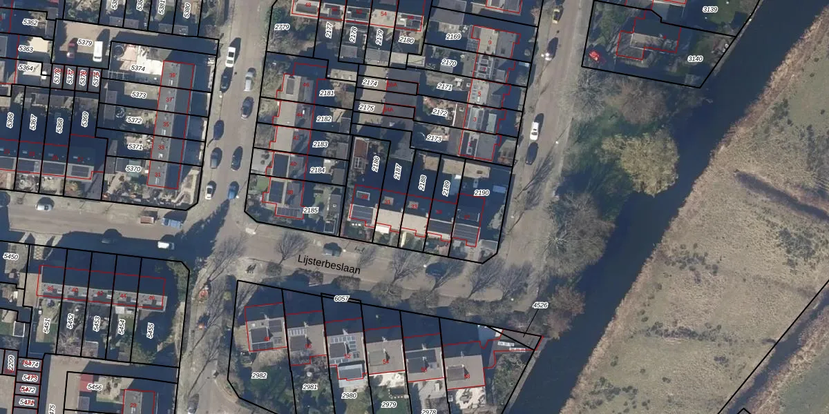Gebruik de zoekbalk of klik op een perceel voor informatie over de adressen binnen dit perceel.