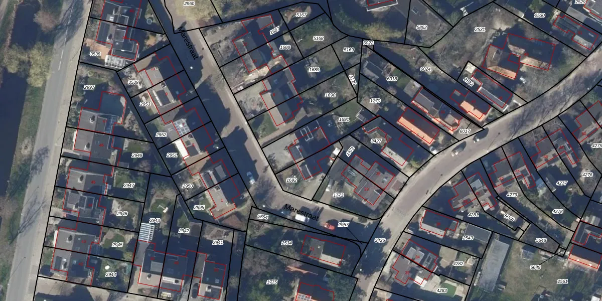 Het perceel waarop Marestraat 4 staat heeft een oppervlakte van 360 m². Dit is een groot perceel. De perceeloppervlakte wordt geregistreerd door het Kadaster. Gedetailleerde informatie over de maten van dit perceel kunt u vinden in het rapport Kadastrale kaart met maatvoering van Marestraat 4.