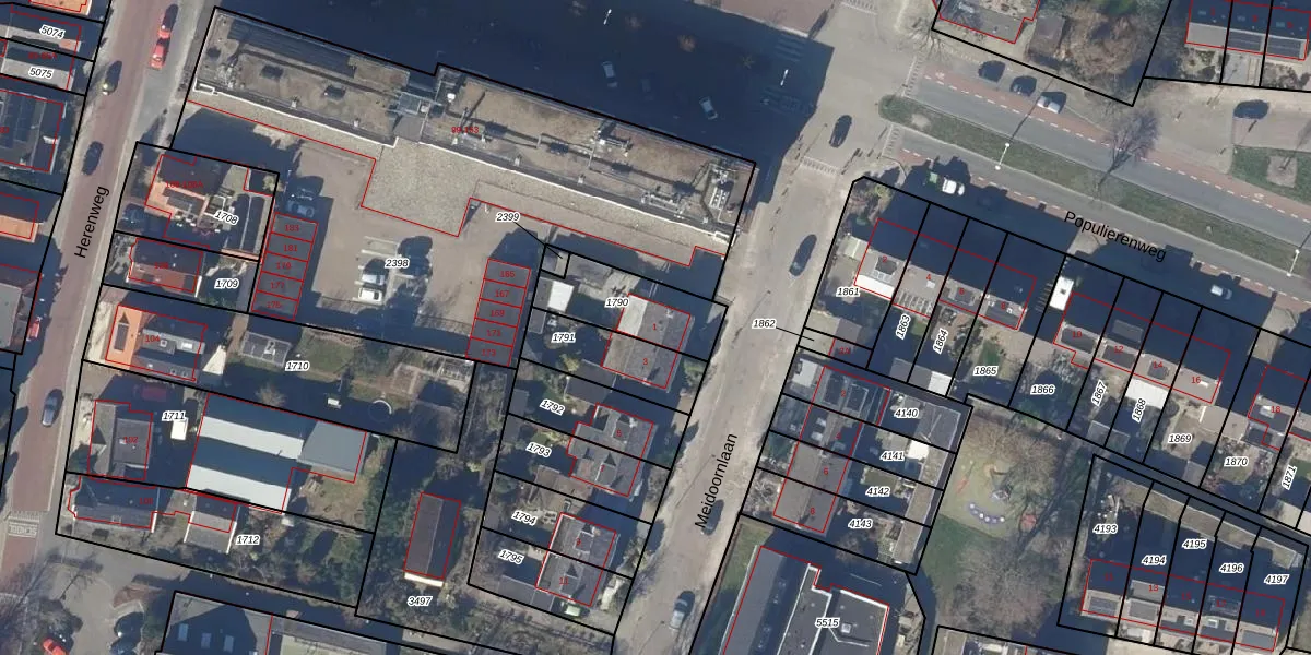 Gebruik de zoekbalk of klik op een perceel voor informatie over de adressen binnen dit perceel.