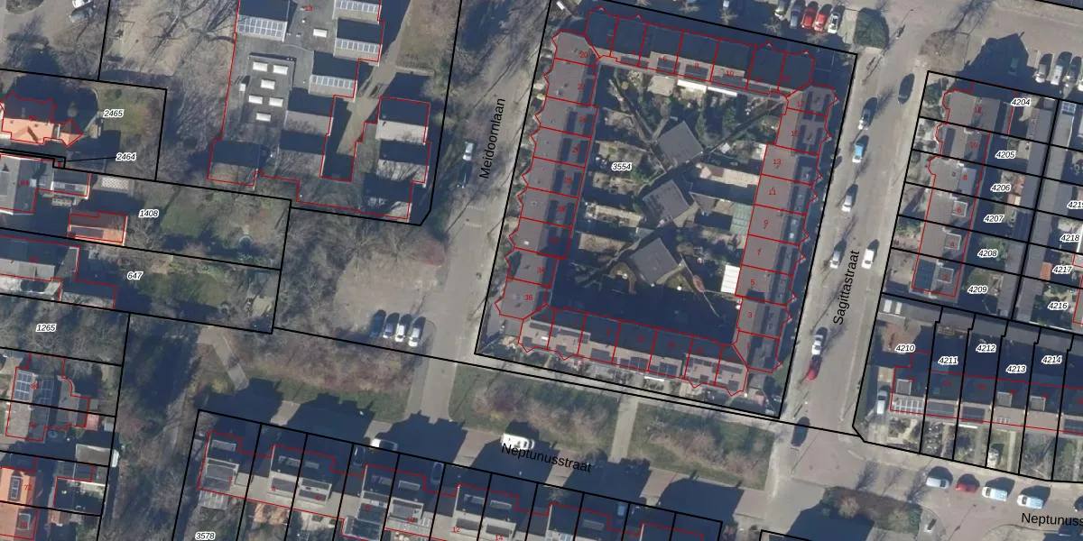 Het perceel waarop Meidoornlaan 34 staat heeft een oppervlakte van 3953 m². Dit is een zeer groot perceel. De perceeloppervlakte wordt geregistreerd door het Kadaster. Gedetailleerde informatie over de maten van dit perceel kunt u vinden in het rapport Kadastrale kaart met maatvoering van Meidoornlaan 34.
