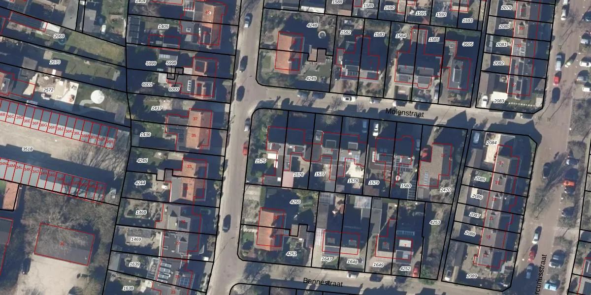 Het perceel waarop Molenstraat 4 staat heeft een oppervlakte van 240 m². Dit is een middelgroot perceel. De perceeloppervlakte wordt geregistreerd door het Kadaster. Gedetailleerde informatie over de maten van dit perceel kunt u vinden in het rapport Kadastrale kaart met maatvoering van Molenstraat 4.