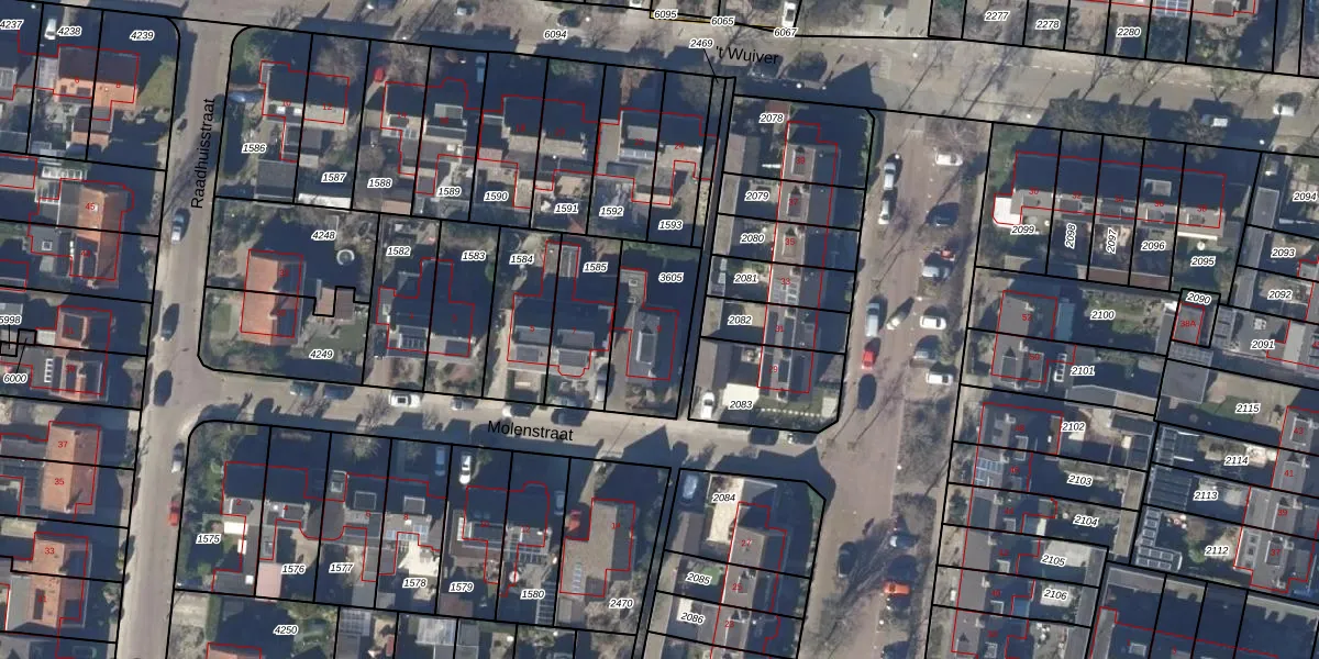Het perceel waarop Molenstraat 9 staat heeft een oppervlakte van 310 m². Dit is een groot perceel. De perceeloppervlakte wordt geregistreerd door het Kadaster. Gedetailleerde informatie over de maten van dit perceel kunt u vinden in het rapport Kadastrale kaart met maatvoering van Molenstraat 9.