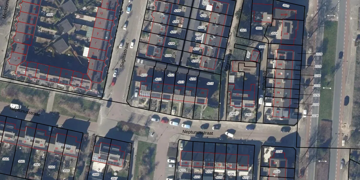 Gebruik de zoekbalk of klik op een perceel voor informatie over de adressen binnen dit perceel.