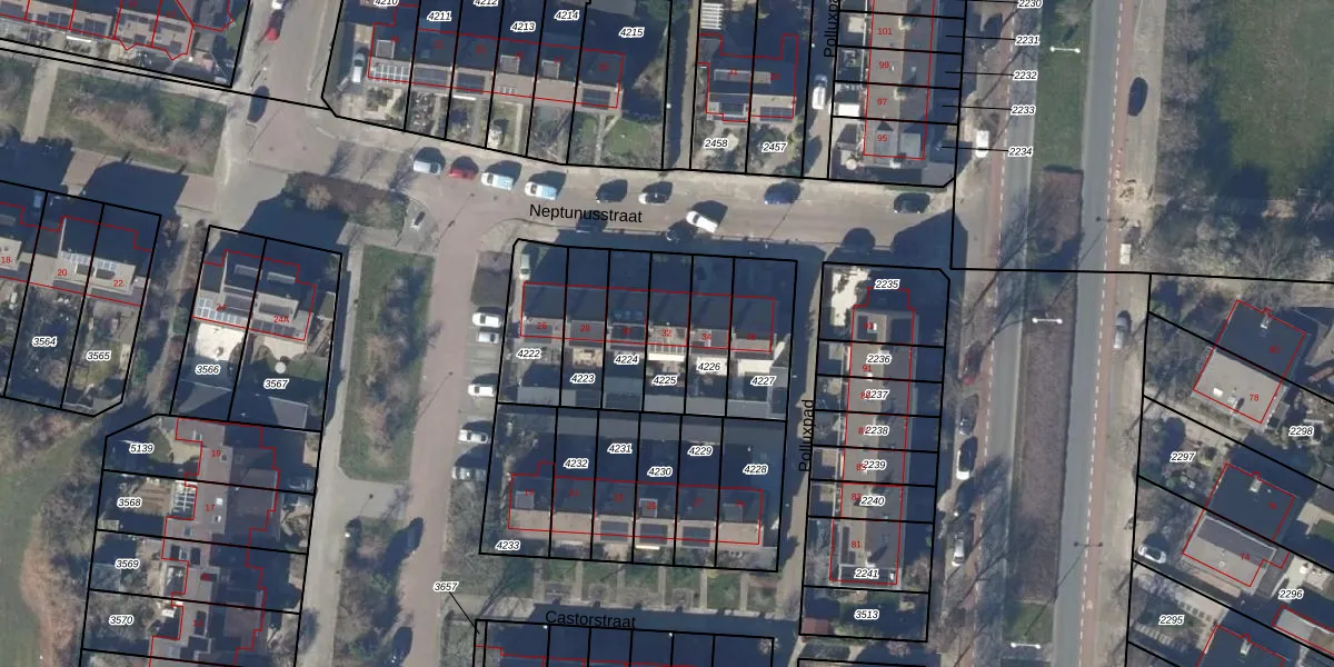 Gebruik de zoekbalk of klik op een perceel voor informatie over de adressen binnen dit perceel.