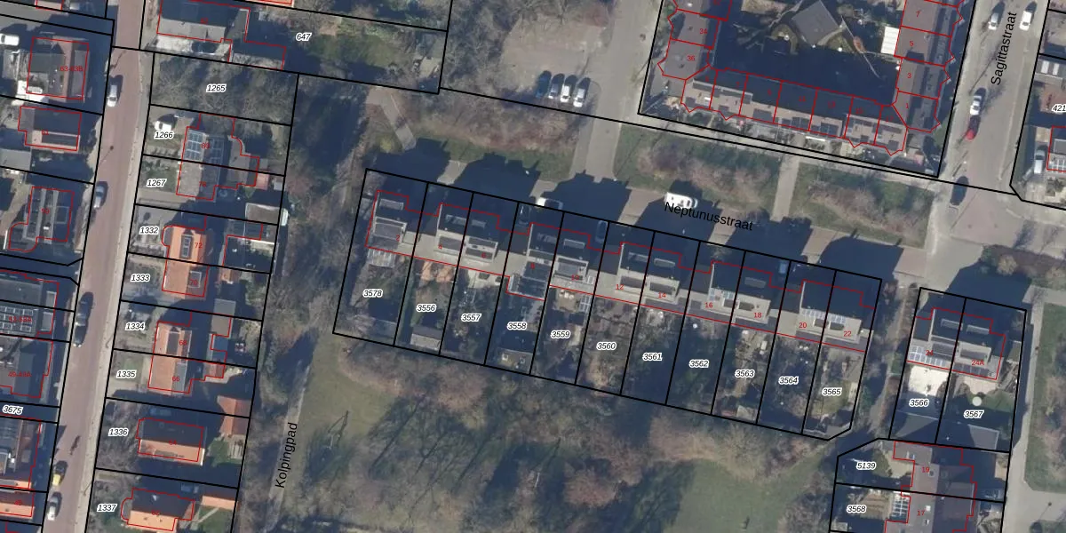 Neptunusstraat 8 is gelegen op kadastraal perceel ODP02A3558. Deze kadastrale aanduiding is uniek en wordt gebruikt door het Kadaster om eigendomsrechten en andere zakelijke rechten vast te leggen. Het perceel maakt onderdeel uit van de kadastrale gemeente Oudorp.