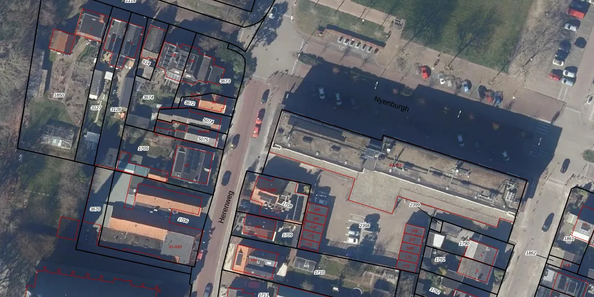 Het perceel waarop Nyenburgh 161 staat heeft een oppervlakte van 2715 m². Dit is een zeer groot perceel. De perceeloppervlakte wordt geregistreerd door het Kadaster. Gedetailleerde informatie over de maten van dit perceel kunt u vinden in het rapport Kadastrale kaart met maatvoering van Nyenburgh 161.