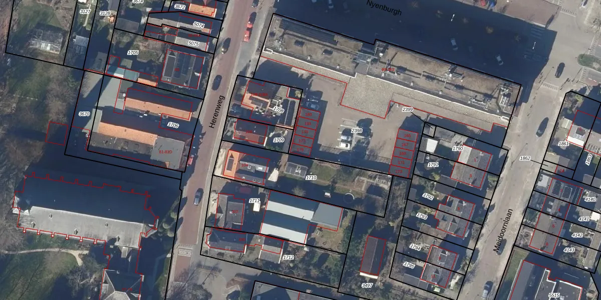 Het perceel waarop Nyenburgh 175 staat heeft een oppervlakte van 2715 m². Dit is een zeer groot perceel. De perceeloppervlakte wordt geregistreerd door het Kadaster. Gedetailleerde informatie over de maten van dit perceel kunt u vinden in het rapport Kadastrale kaart met maatvoering van Nyenburgh 175.