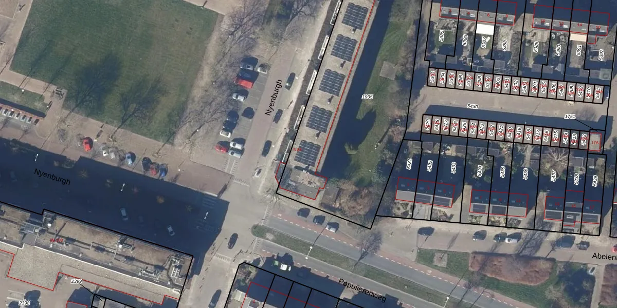 Het perceel waarop Nyenburgh 43 staat heeft een oppervlakte van 2450 m². Dit is een zeer groot perceel. De perceeloppervlakte wordt geregistreerd door het Kadaster. Gedetailleerde informatie over de maten van dit perceel kunt u vinden in het rapport Kadastrale kaart met maatvoering van Nyenburgh 43.