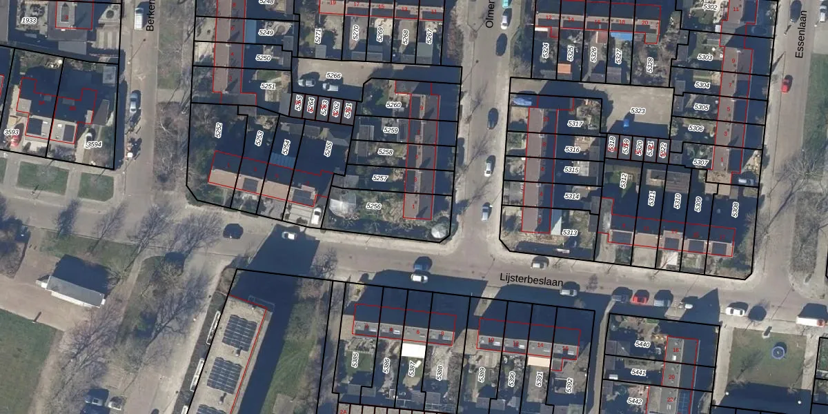 Het perceel waarop Olmenlaan 1 staat heeft een oppervlakte van 325 m². Dit is een groot perceel. De perceeloppervlakte wordt geregistreerd door het Kadaster. Gedetailleerde informatie over de maten van dit perceel kunt u vinden in het rapport Kadastrale kaart met maatvoering van Olmenlaan 1.