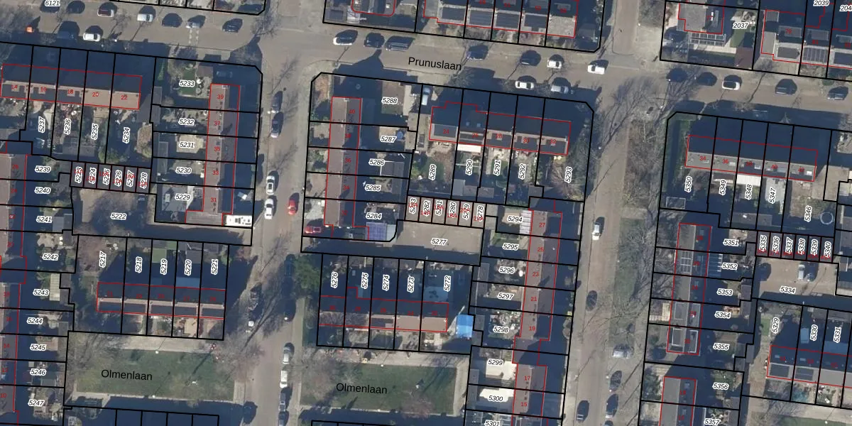 Gebruik de zoekbalk of klik op een perceel voor informatie over de adressen binnen dit perceel.