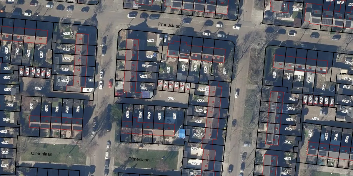 Gebruik de zoekbalk of klik op een perceel voor informatie over de adressen binnen dit perceel.