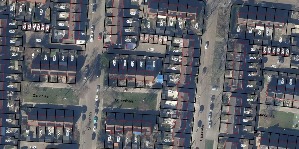 Gebruik de zoekbalk of klik op een perceel voor informatie over de adressen binnen dit perceel.