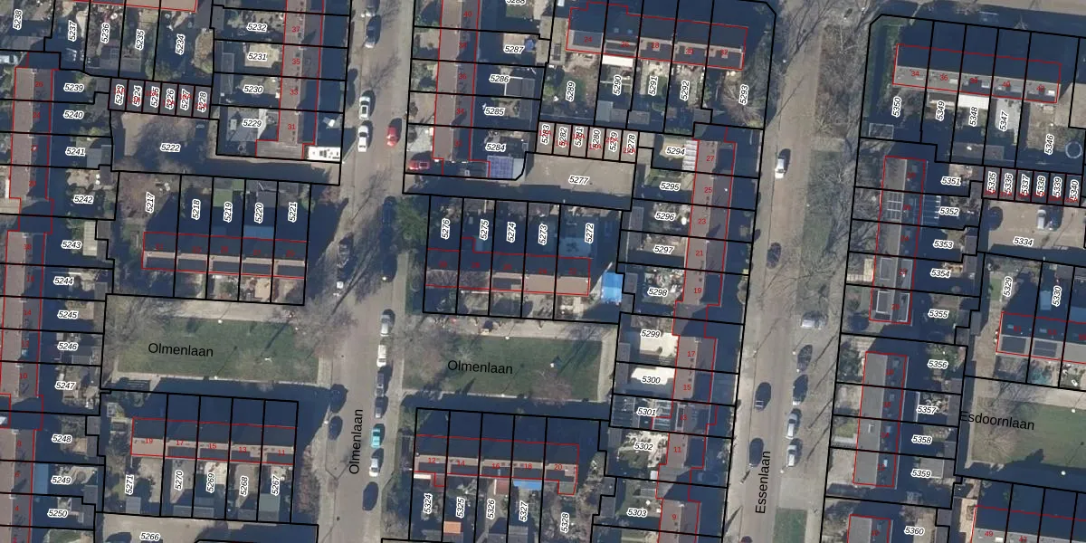 Olmenlaan 24 is gelegen op kadastraal perceel ODP02A5273. Deze kadastrale aanduiding is uniek en wordt gebruikt door het Kadaster om eigendomsrechten en andere zakelijke rechten vast te leggen. Het perceel maakt onderdeel uit van de kadastrale gemeente Oudorp.