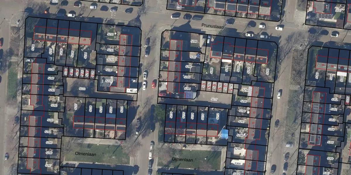 Olmenlaan 32 is gelegen op kadastraal perceel ODP02A5284. Deze kadastrale aanduiding is uniek en wordt gebruikt door het Kadaster om eigendomsrechten en andere zakelijke rechten vast te leggen. Het perceel maakt onderdeel uit van de kadastrale gemeente Oudorp.