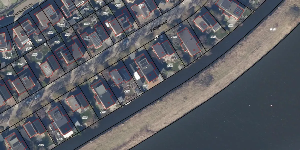 Pallasstraat 44 is gelegen op kadastraal perceel ODP02A4057. Deze kadastrale aanduiding is uniek en wordt gebruikt door het Kadaster om eigendomsrechten en andere zakelijke rechten vast te leggen. Het perceel maakt onderdeel uit van de kadastrale gemeente Oudorp.