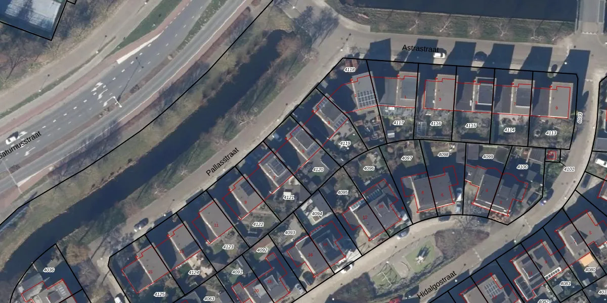 Pallasstraat 5 is gelegen op kadastraal perceel ODP02A4120. Deze kadastrale aanduiding is uniek en wordt gebruikt door het Kadaster om eigendomsrechten en andere zakelijke rechten vast te leggen. Het perceel maakt onderdeel uit van de kadastrale gemeente Oudorp.