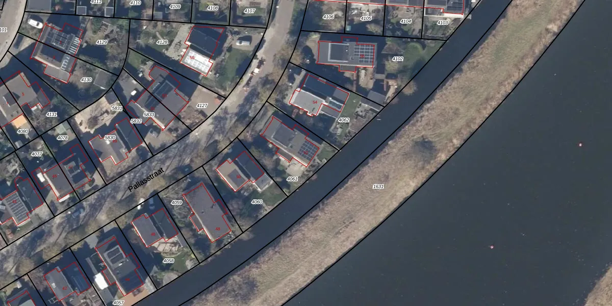 Pallasstraat 52 is gelegen op kadastraal perceel ODP02A4061. Deze kadastrale aanduiding is uniek en wordt gebruikt door het Kadaster om eigendomsrechten en andere zakelijke rechten vast te leggen. Het perceel maakt onderdeel uit van de kadastrale gemeente Oudorp.