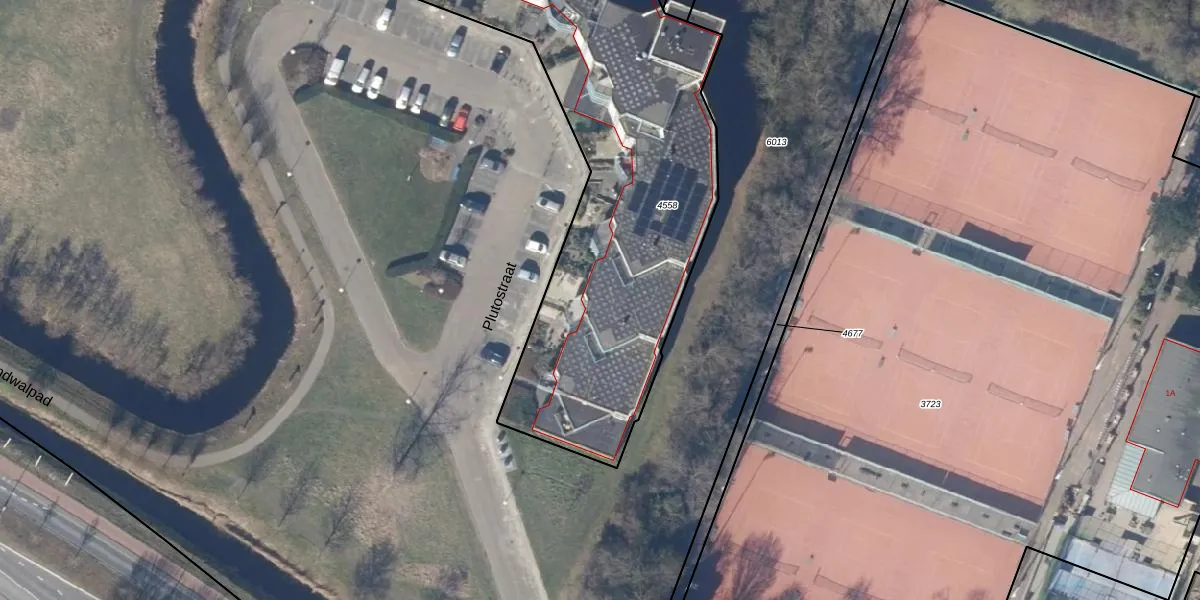 Het perceel waarop Plutostraat 18 staat heeft een oppervlakte van 2584 m². Dit is een zeer groot perceel. De perceeloppervlakte wordt geregistreerd door het Kadaster. Gedetailleerde informatie over de maten van dit perceel kunt u vinden in het rapport Kadastrale kaart met maatvoering van Plutostraat 18.
