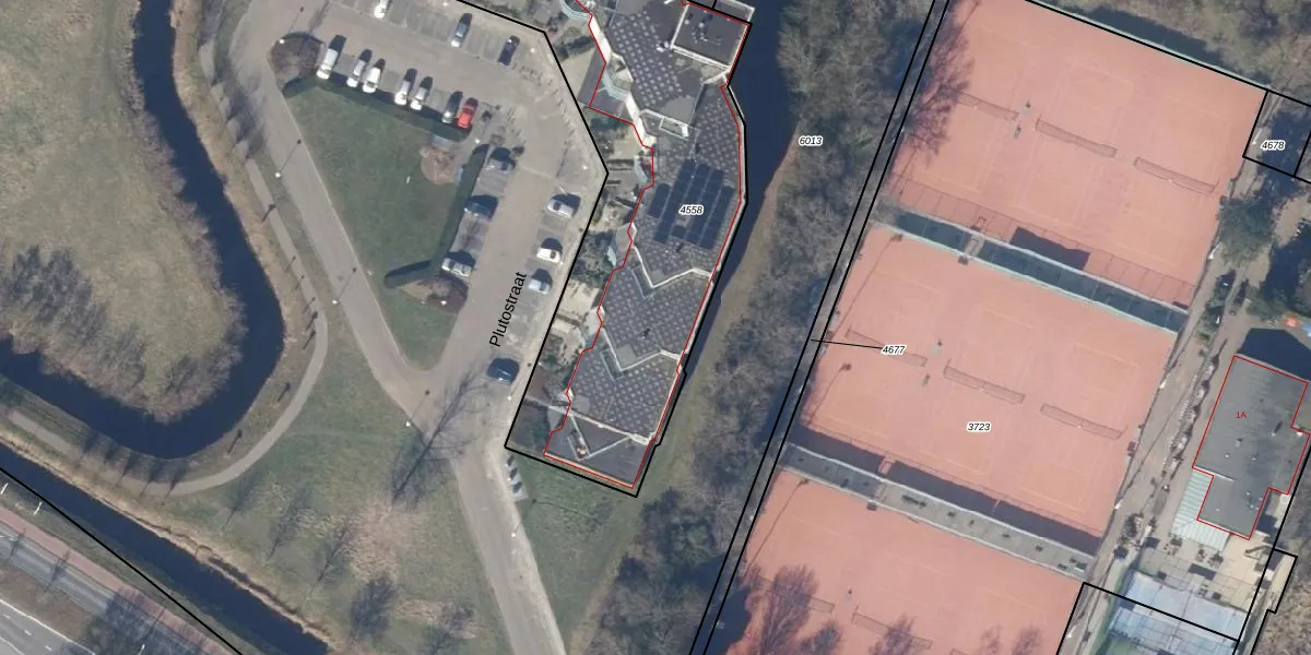 Het perceel waarop Plutostraat 72 staat heeft een oppervlakte van 2584 m². Dit is een zeer groot perceel. De perceeloppervlakte wordt geregistreerd door het Kadaster. Gedetailleerde informatie over de maten van dit perceel kunt u vinden in het rapport Kadastrale kaart met maatvoering van Plutostraat 72.