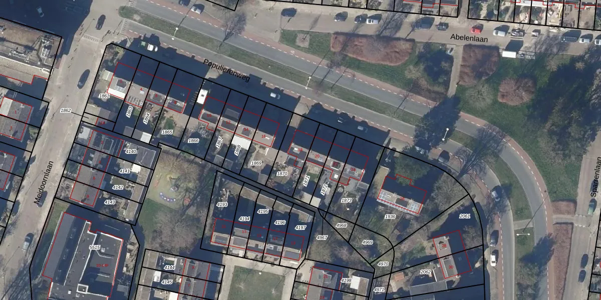 Gebruik de zoekbalk of klik op een perceel voor informatie over de adressen binnen dit perceel.