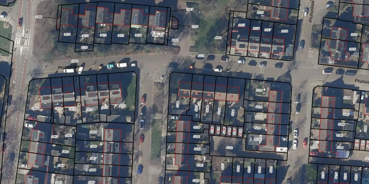 Het perceel waarop Prunuslaan 14 staat heeft een oppervlakte van 265 m². Dit is een middelgroot perceel. De perceeloppervlakte wordt geregistreerd door het Kadaster. Gedetailleerde informatie over de maten van dit perceel kunt u vinden in het rapport Kadastrale kaart met maatvoering van Prunuslaan 14.