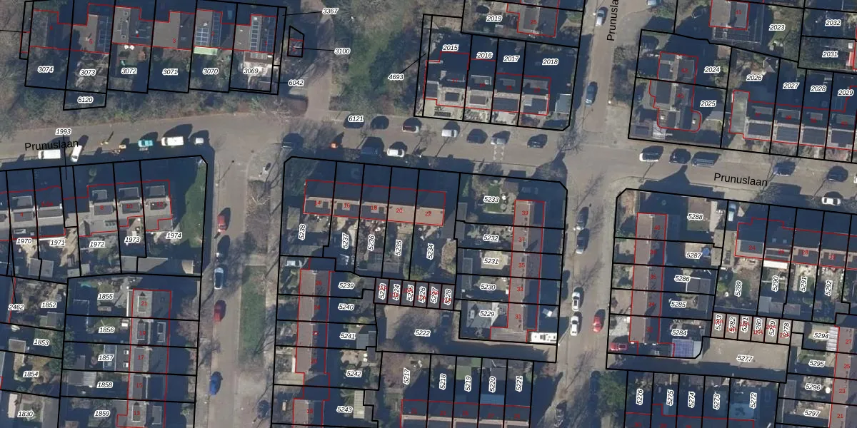 Gebruik de zoekbalk of klik op een perceel voor informatie over de adressen binnen dit perceel.