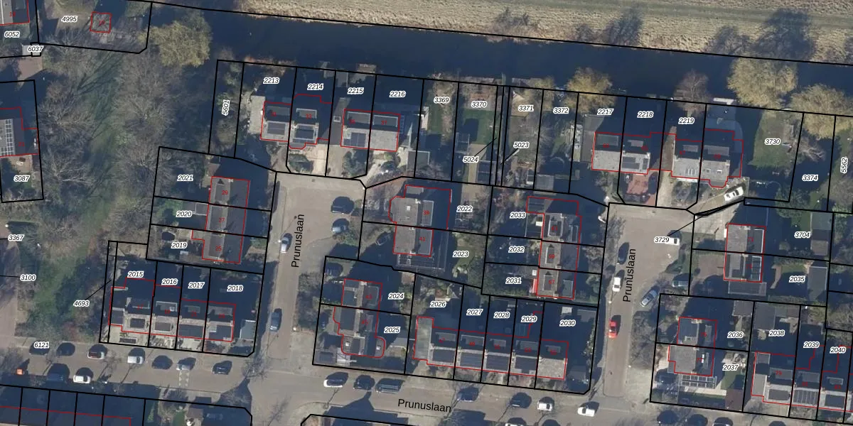 Het perceel waarop Prunuslaan 39 staat heeft een oppervlakte van 326 m². Dit is een groot perceel. De perceeloppervlakte wordt geregistreerd door het Kadaster. Gedetailleerde informatie over de maten van dit perceel kunt u vinden in het rapport Kadastrale kaart met maatvoering van Prunuslaan 39.