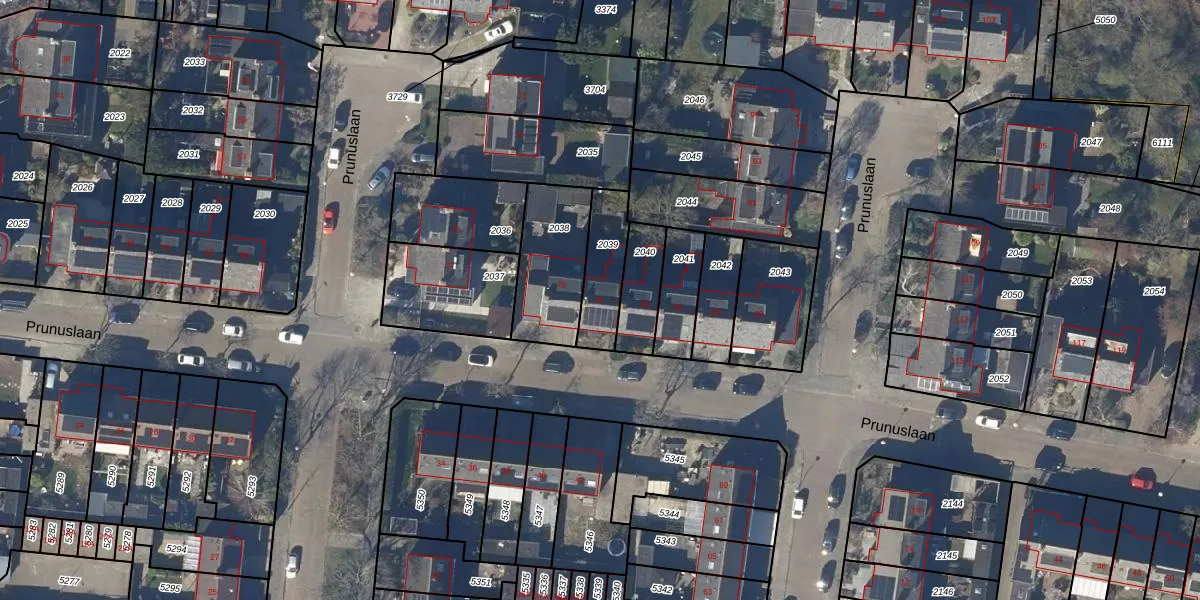 Gebruik de zoekbalk of klik op een perceel voor informatie over de adressen binnen dit perceel.