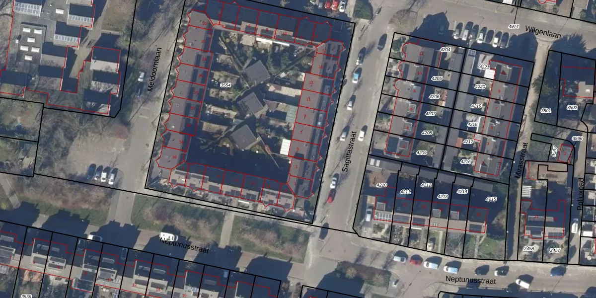 Het perceel waarop Sagittastraat 5 staat heeft een oppervlakte van 3953 m². Dit is een zeer groot perceel. De perceeloppervlakte wordt geregistreerd door het Kadaster. Gedetailleerde informatie over de maten van dit perceel kunt u vinden in het rapport Kadastrale kaart met maatvoering van Sagittastraat 5.