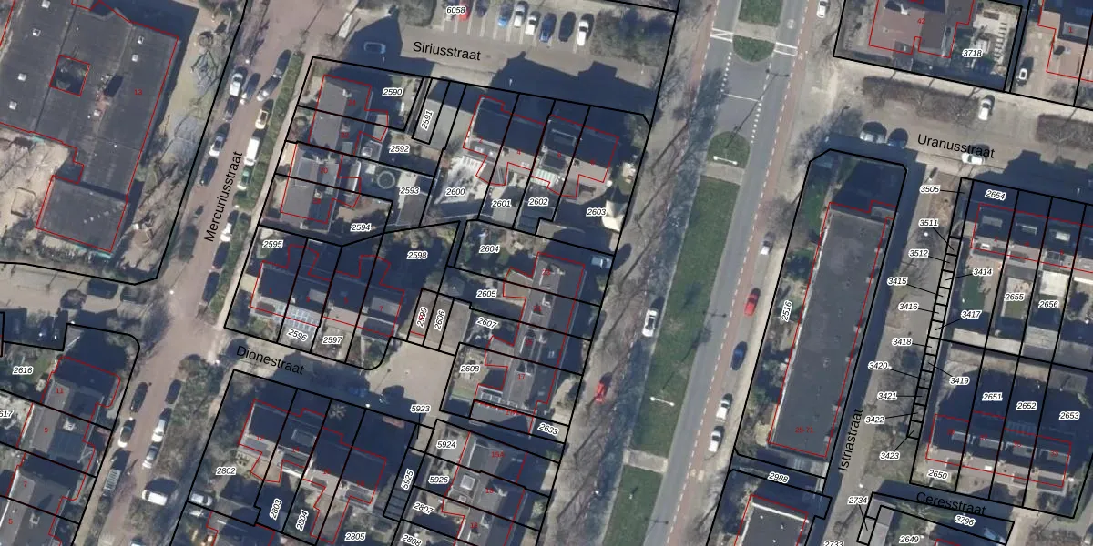 Gebruik de zoekbalk of klik op een perceel voor informatie over de adressen binnen dit perceel.