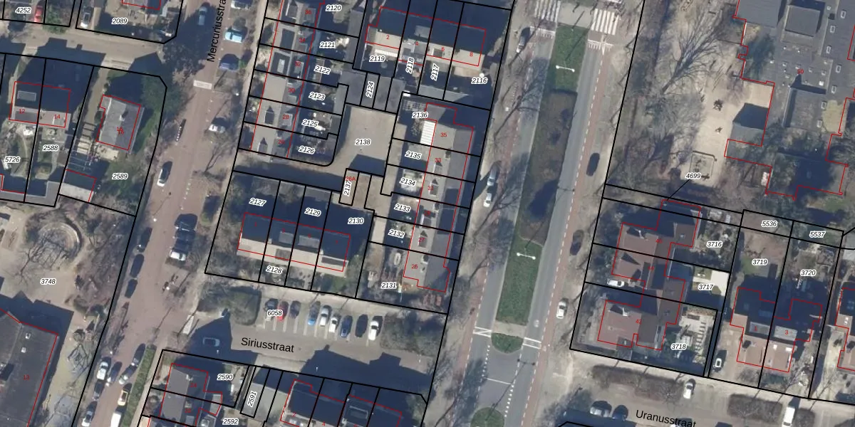 Gebruik de zoekbalk of klik op een perceel voor informatie over de adressen binnen dit perceel.
