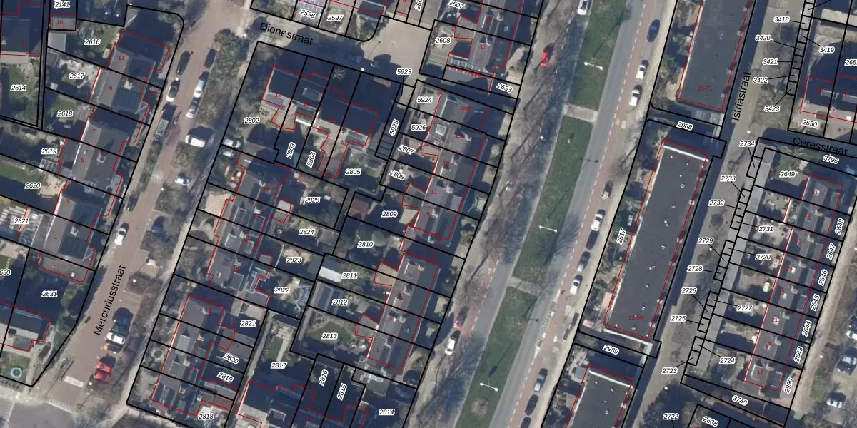 Gebruik de zoekbalk of klik op een perceel voor informatie over de adressen binnen dit perceel.