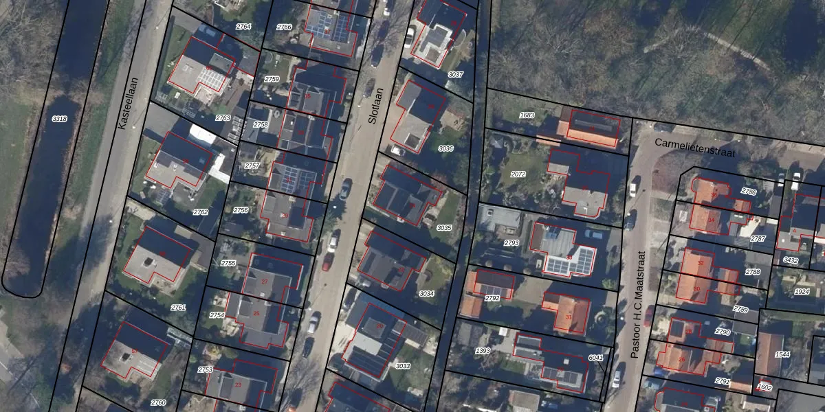 Het perceel waarop Slotlaan 24 staat heeft een oppervlakte van 404 m². Dit is een groot perceel. De perceeloppervlakte wordt geregistreerd door het Kadaster. Gedetailleerde informatie over de maten van dit perceel kunt u vinden in het rapport Kadastrale kaart met maatvoering van Slotlaan 24.