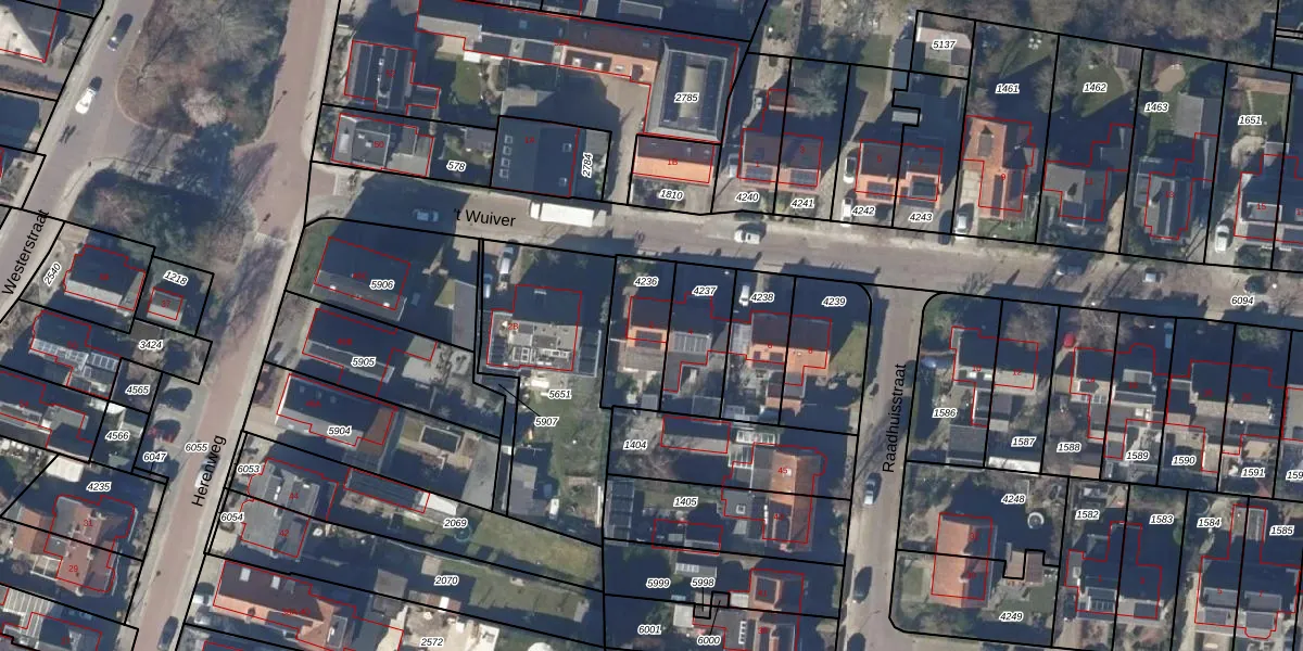Gebruik de zoekbalk of klik op een perceel voor informatie over de adressen binnen dit perceel.