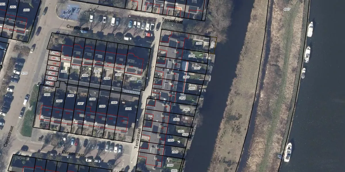 Het perceel waarop Terrastraat 30 staat heeft een oppervlakte van 178 m². Dit is een middelgroot perceel. De perceeloppervlakte wordt geregistreerd door het Kadaster. Gedetailleerde informatie over de maten van dit perceel kunt u vinden in het rapport Kadastrale kaart met maatvoering van Terrastraat 30.