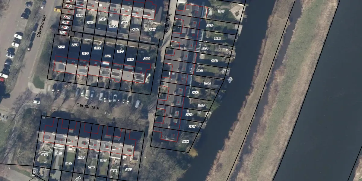 Gebruik de zoekbalk of klik op een perceel voor informatie over de adressen binnen dit perceel.