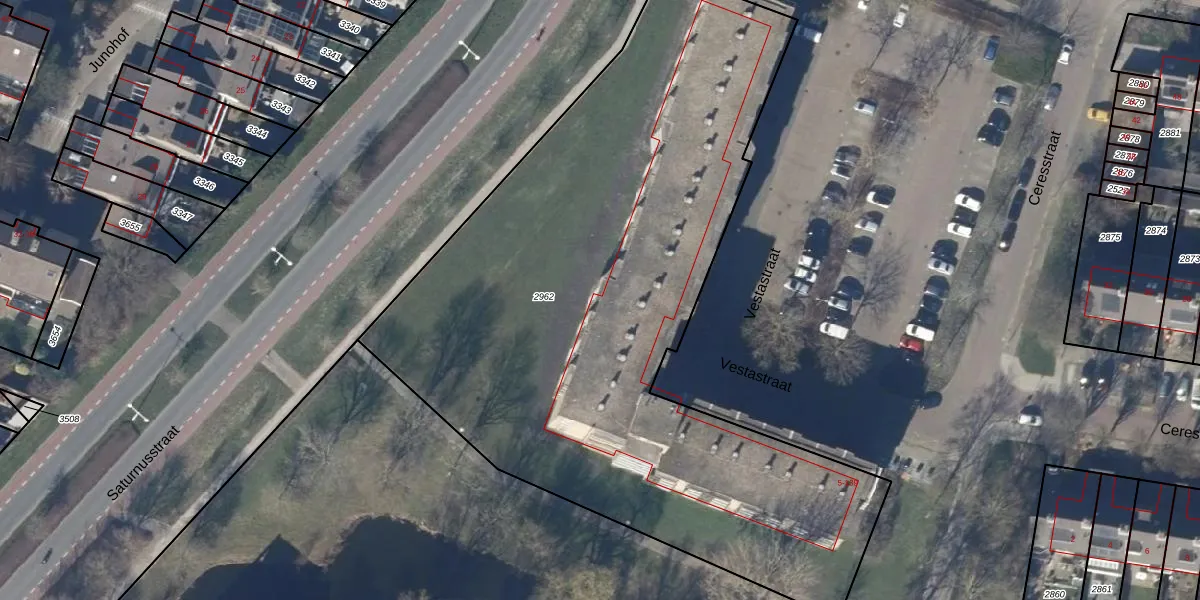 Het perceel waarop Vestastraat 129 staat heeft een oppervlakte van 4063 m². Dit is een zeer groot perceel. De perceeloppervlakte wordt geregistreerd door het Kadaster. Gedetailleerde informatie over de maten van dit perceel kunt u vinden in het rapport Kadastrale kaart met maatvoering van Vestastraat 129.