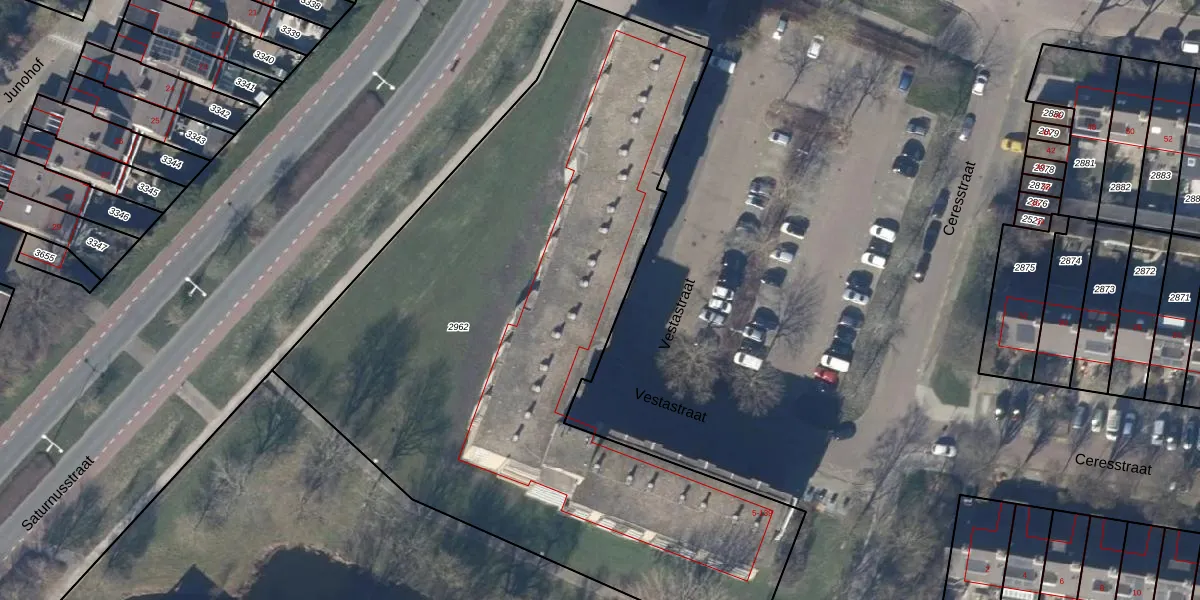 Het perceel waarop Vestastraat 14 staat heeft een oppervlakte van 4063 m². Dit is een zeer groot perceel. De perceeloppervlakte wordt geregistreerd door het Kadaster. Gedetailleerde informatie over de maten van dit perceel kunt u vinden in het rapport Kadastrale kaart met maatvoering van Vestastraat 14.