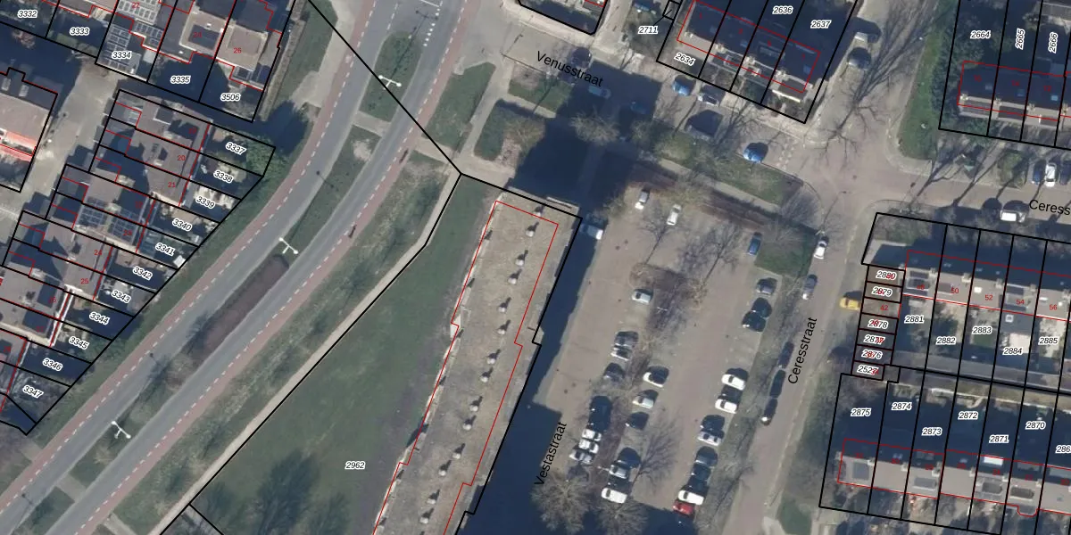 Het perceel waarop Vestastraat 21 staat heeft een oppervlakte van 4063 m². Dit is een zeer groot perceel. De perceeloppervlakte wordt geregistreerd door het Kadaster. Gedetailleerde informatie over de maten van dit perceel kunt u vinden in het rapport Kadastrale kaart met maatvoering van Vestastraat 21.