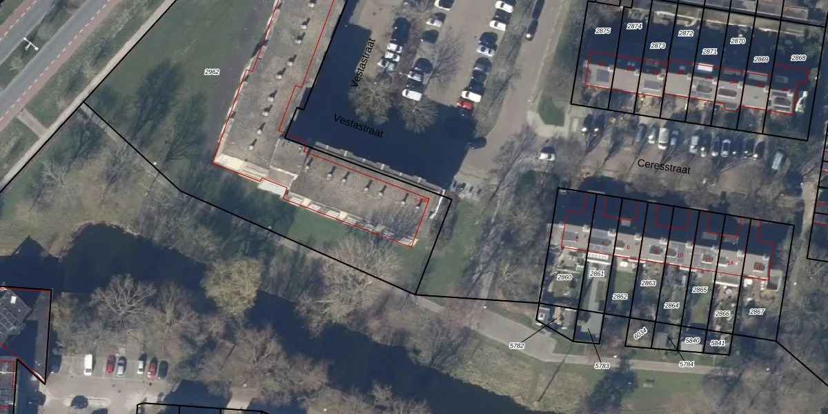 Het perceel waarop Vestastraat 22 staat heeft een oppervlakte van 4063 m². Dit is een zeer groot perceel. De perceeloppervlakte wordt geregistreerd door het Kadaster. Gedetailleerde informatie over de maten van dit perceel kunt u vinden in het rapport Kadastrale kaart met maatvoering van Vestastraat 22.