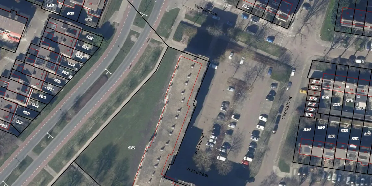 Het perceel waarop Vestastraat 40 staat heeft een oppervlakte van 4063 m². Dit is een zeer groot perceel. De perceeloppervlakte wordt geregistreerd door het Kadaster. Gedetailleerde informatie over de maten van dit perceel kunt u vinden in het rapport Kadastrale kaart met maatvoering van Vestastraat 40.