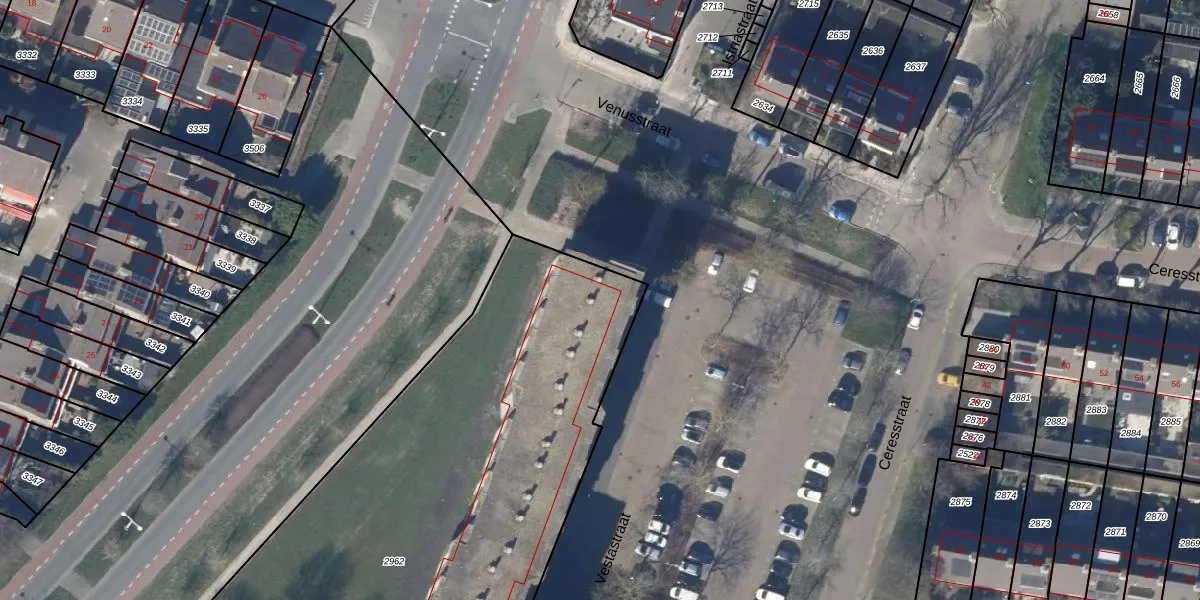 Het perceel waarop Vestastraat 43 staat heeft een oppervlakte van 4063 m². Dit is een zeer groot perceel. De perceeloppervlakte wordt geregistreerd door het Kadaster. Gedetailleerde informatie over de maten van dit perceel kunt u vinden in het rapport Kadastrale kaart met maatvoering van Vestastraat 43.