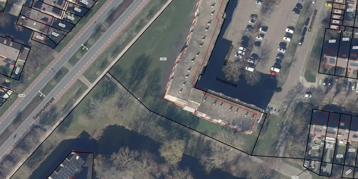 Het perceel waarop Vestastraat 52 staat heeft een oppervlakte van 4063 m². Dit is een zeer groot perceel. De perceeloppervlakte wordt geregistreerd door het Kadaster. Gedetailleerde informatie over de maten van dit perceel kunt u vinden in het rapport Kadastrale kaart met maatvoering van Vestastraat 52.